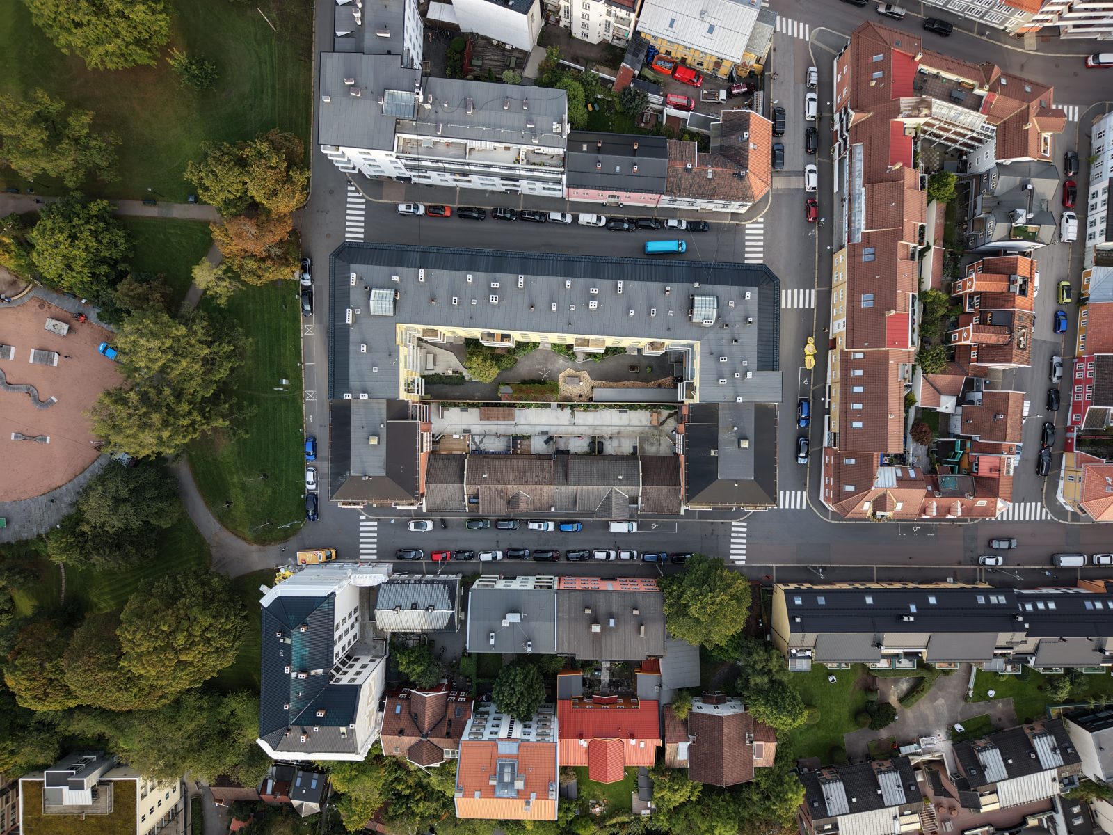 Galleri Trykk på bildene for å se større utgaver Dronebilde ovenfra Dronebilde mot vest Dronebilde fra Kampen Park Dronebilde av borettslaget